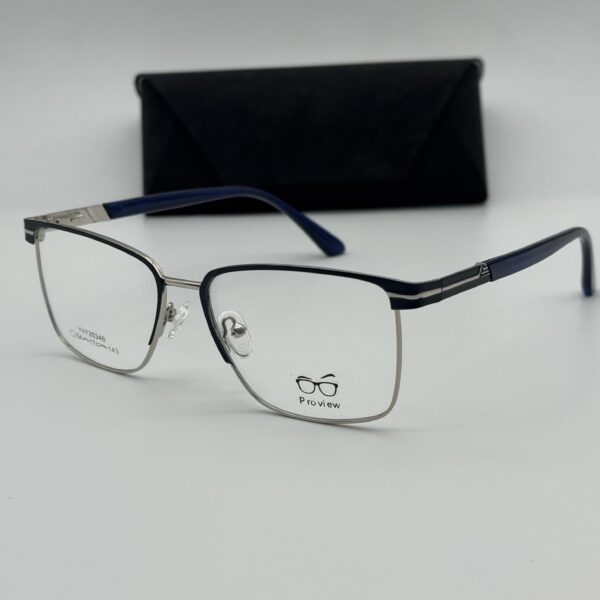 Matière : Métal Forme : rectangulaire Couleur : Bleu et argenté Packaging : Lunettes livrées avec packaging complet (boîte, étui,