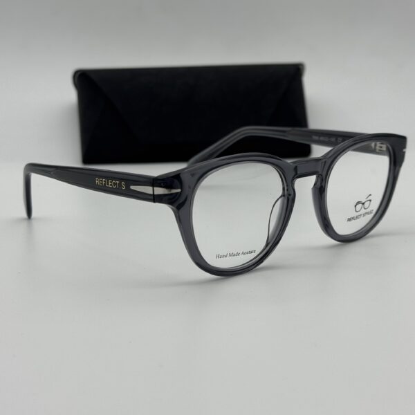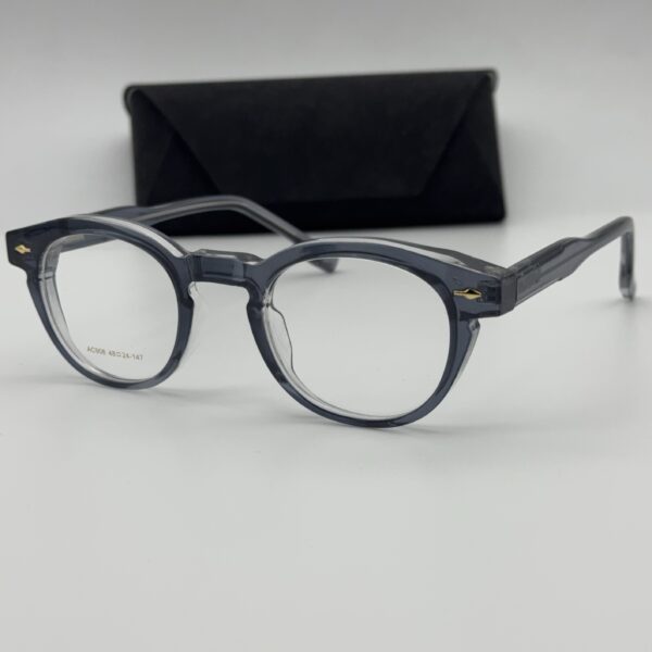 Matière : Acétate Forme : Ronde Couleur : transparent gris Packaging : Lunettes livrées avec packaging complet (boîte, étui, chiffon…)