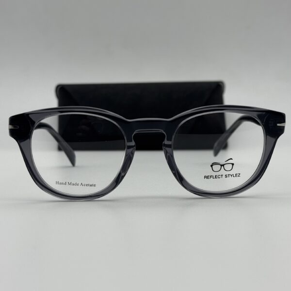 Matière : Acétate Forme : Ronde Couleur : transparent gris Packaging : Lunettes livrées avec packaging complet (boîte, étui, chiffon…)
