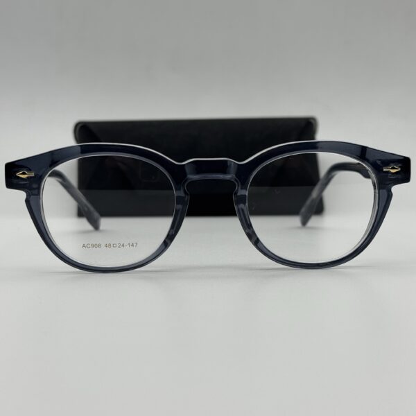 Matière : Acétate Forme : Ronde Couleur : transparent bleu Packaging : Lunettes livrées avec packaging complet (boîte, étui, chiffon…)