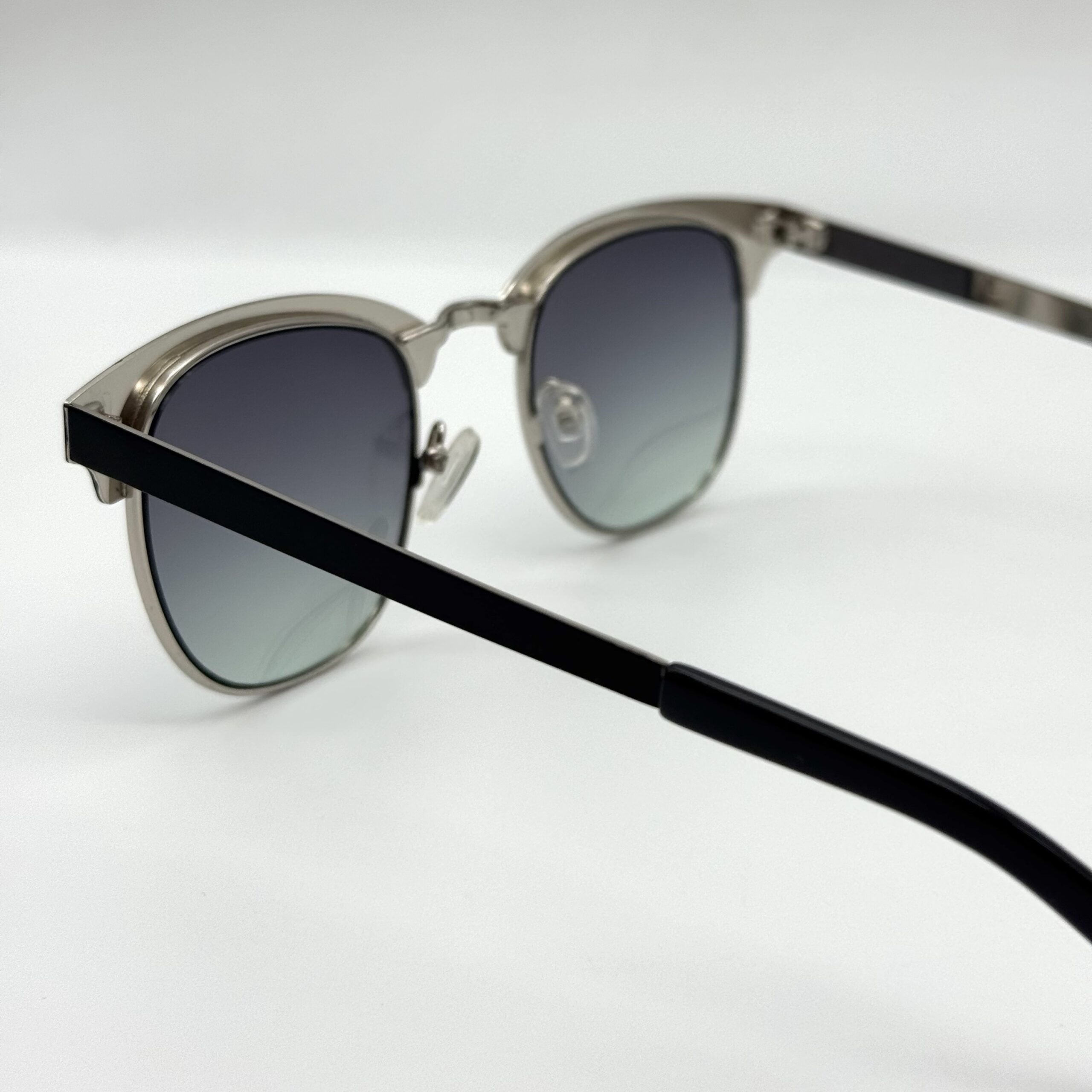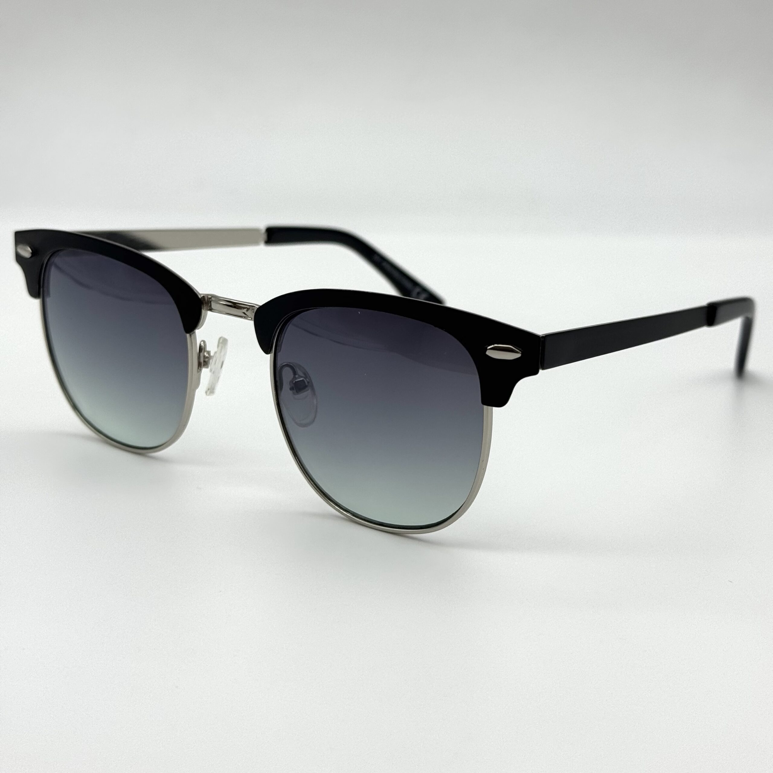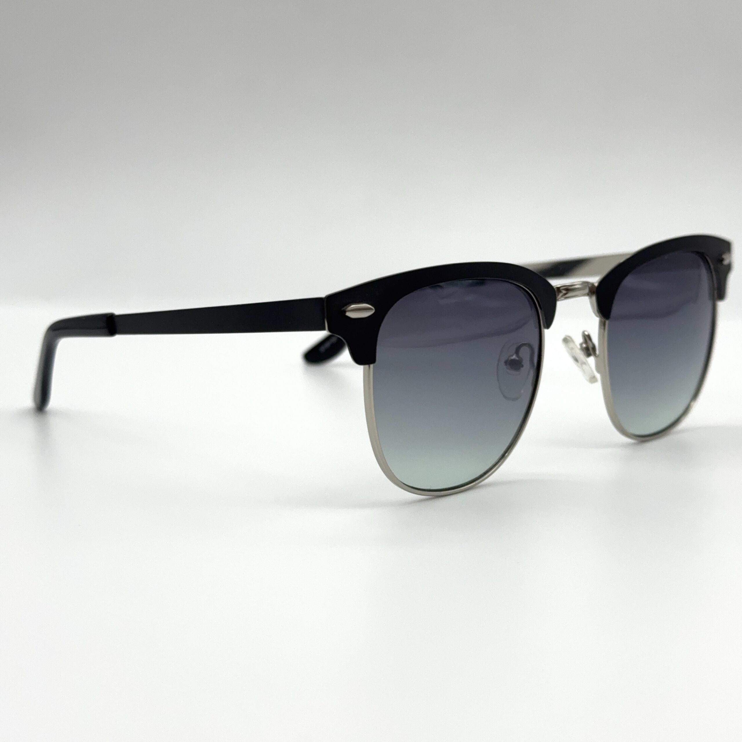 Version bleutée du modèle Jul : monture noire et argentée avec verres bleu‑gris élégants. Un style raffiné avec une touche moderne colorée.