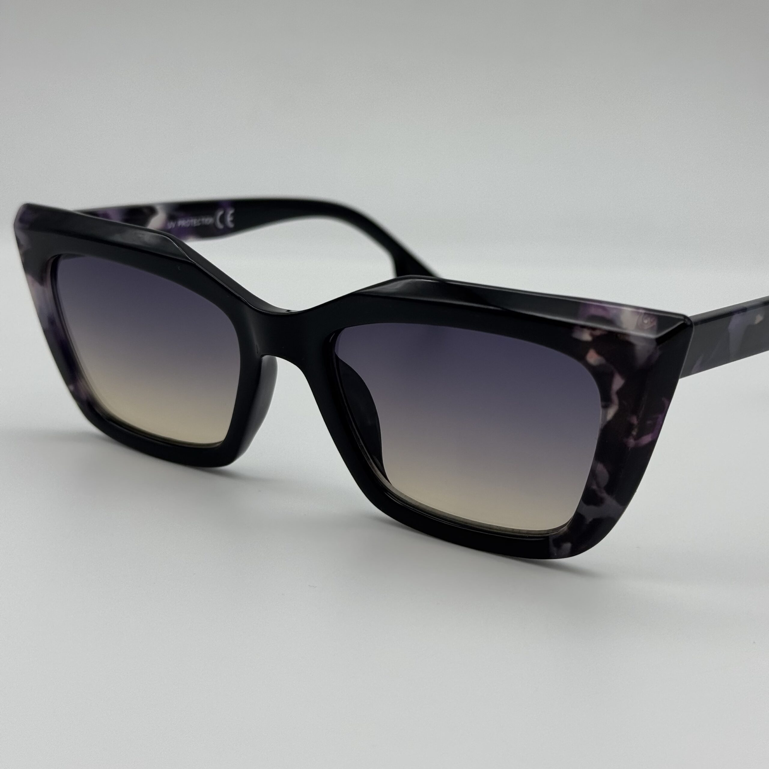Une forme papillon élégante accompagnée d’un magnifique dégradé sur les verres. Le mélange violet/écaille rend ce modèle unique, féminin et tendance.