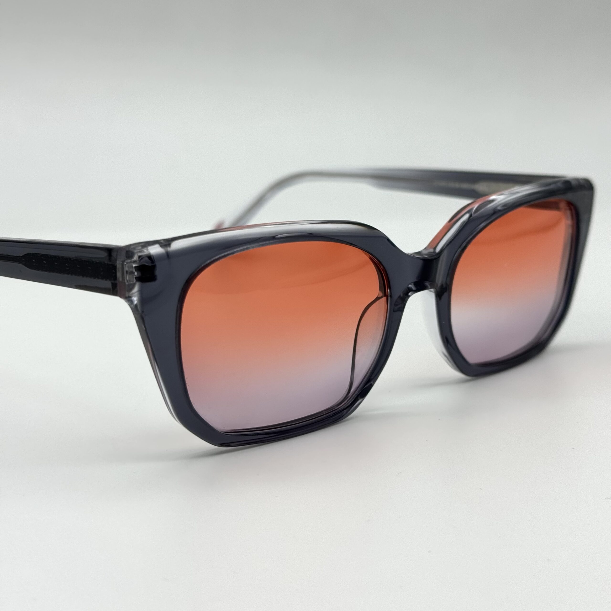 Un design féminin et frais avec une monture translucide très tendance. Le dégradé rouge apporte un style vibrant et moderne.