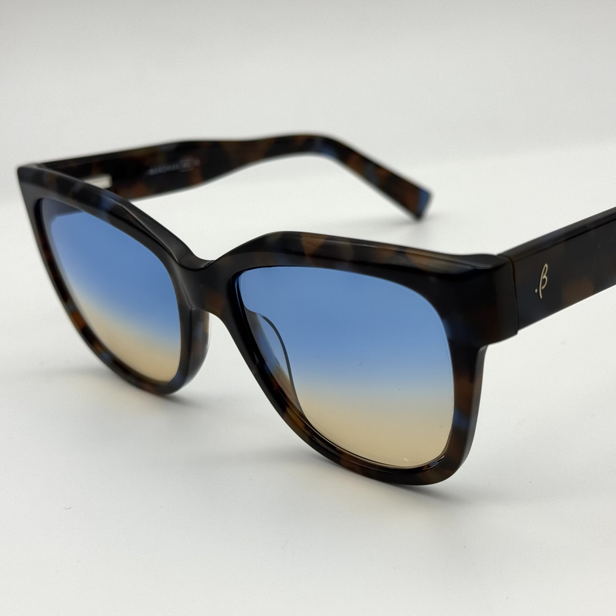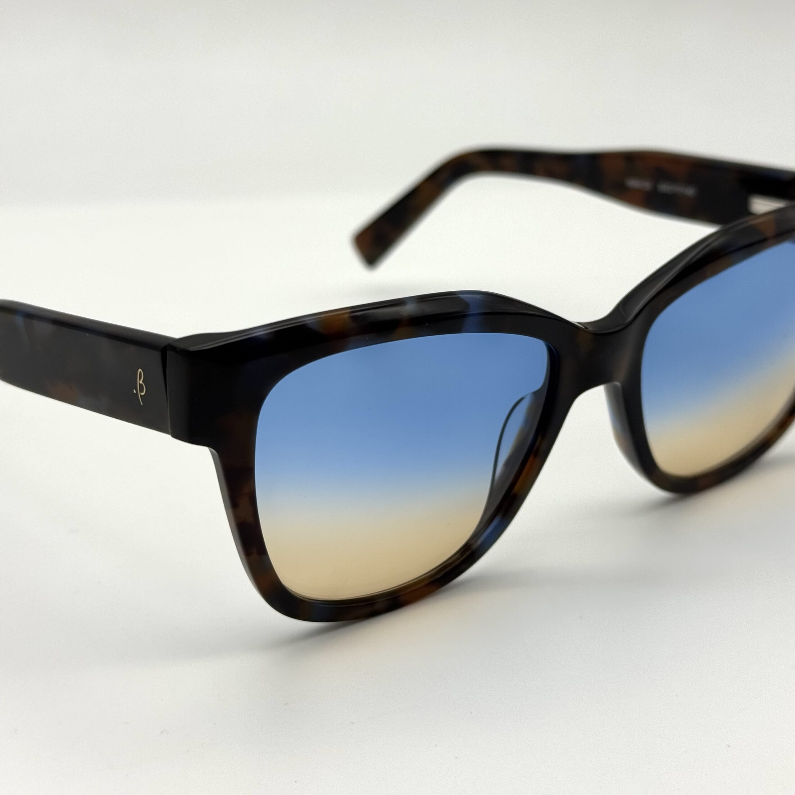 Une monture écaille avec un dégradé inspiré des couleurs de la ville bleue. Style naturel, moderne et très harmonieux.