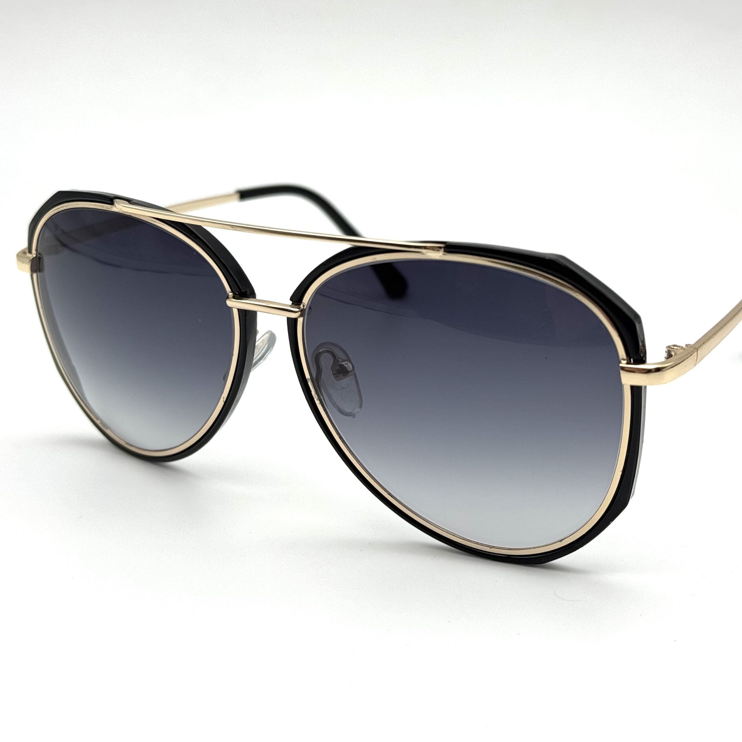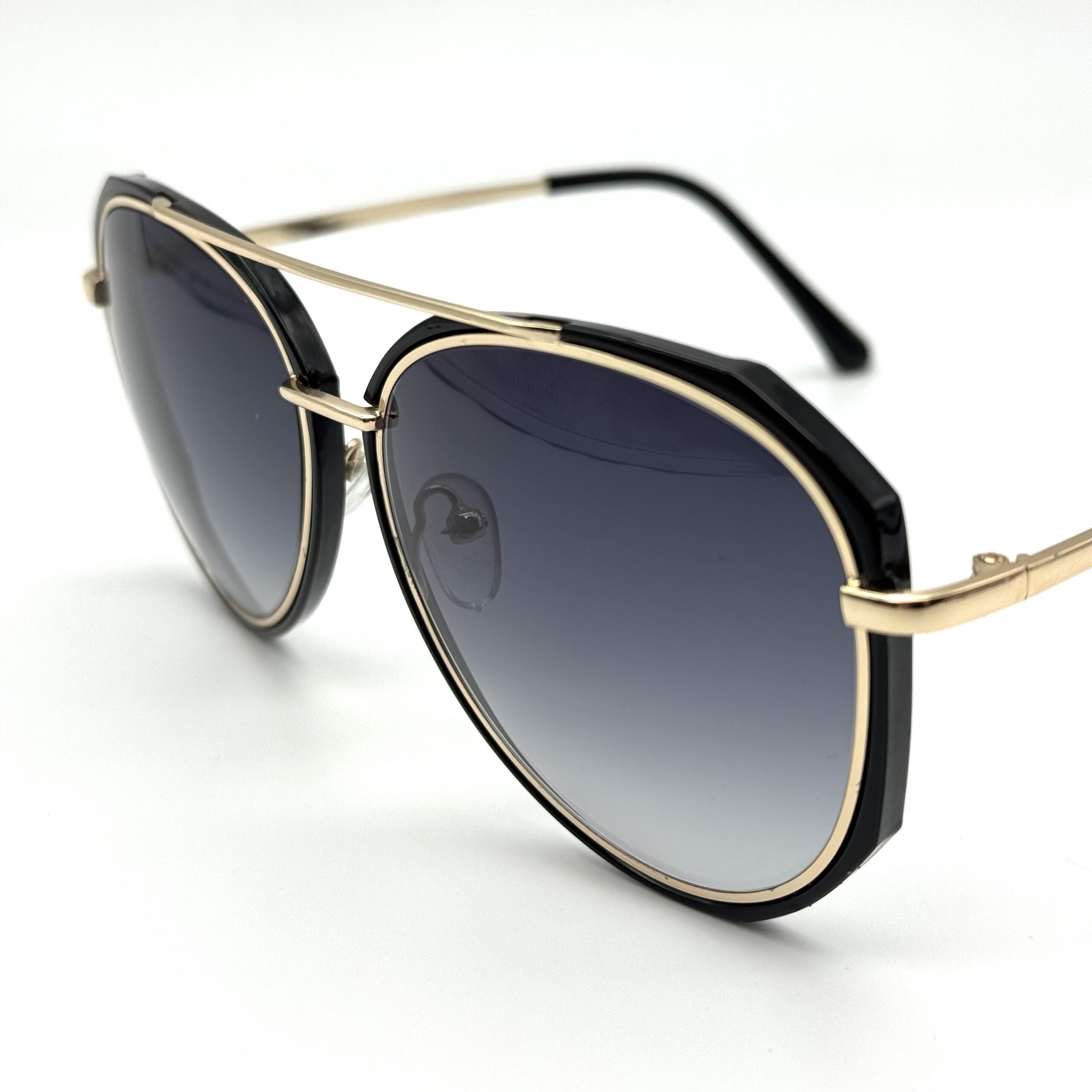 Un modèle aviateur moderne et raffiné. Le double pont doré et le contour noir créent un look très chic et tendance.