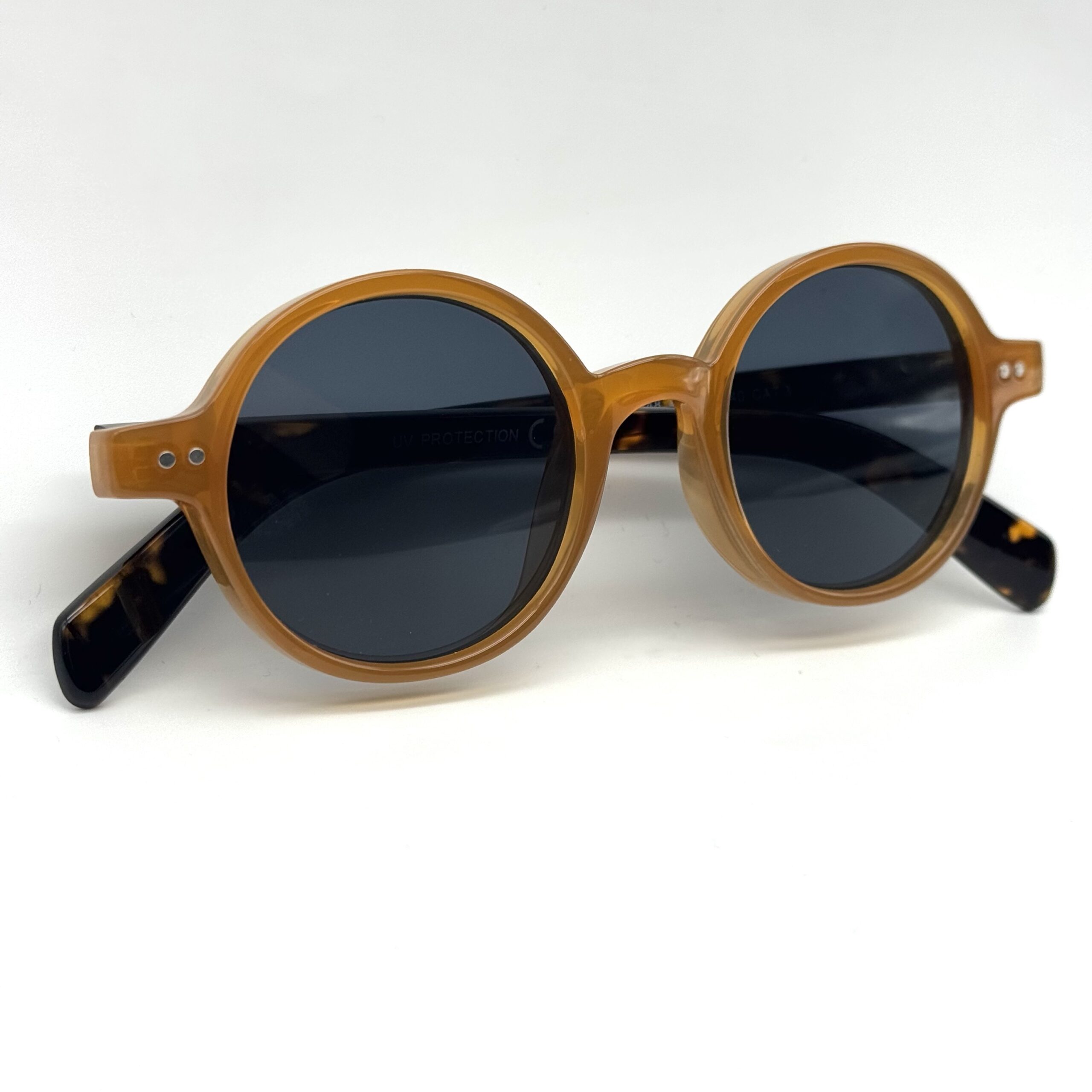 Un modèle rond au charme vintage. Sa monture marron miel combinée aux branches écaille offre un style chaleureux et artistique. Un look rétro, créatif et très tendance.